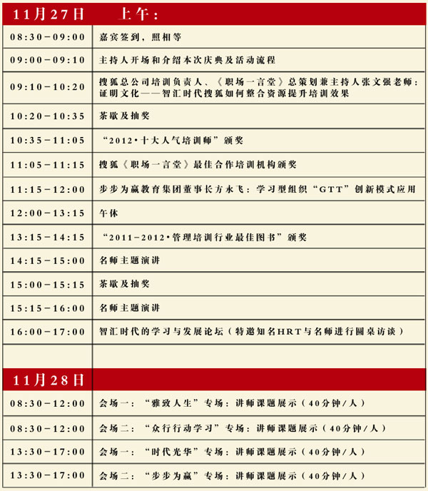 2) 2011-2012年度優(yōu)秀講師評(píng)比及管理培訓(xùn)行業(yè)十大圖書(shū)評(píng)比結(jié)果的頒布;