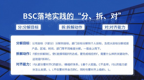 “落地方法分拆對”進(jìn)一步細(xì)化了戰(zhàn)略執(zhí)行的步驟,通過分解目標(biāo)、拆解行動和對齊能力,確保每個員工的工作與企業(yè)的戰(zhàn)略目標(biāo)緊密相連,這種方法增強了執(zhí)行的精準(zhǔn)性,幫助企業(yè)在復(fù)雜的環(huán)境中保持一致性和靈活性。
