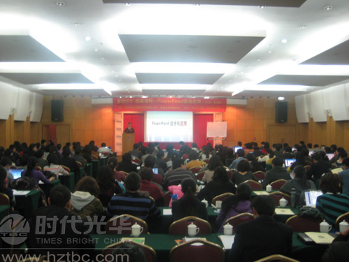 張劍悅老師從幻燈片的配色,圖表的制做,立體視覺效果圖型的設計與制做,再到自定義動畫的設置,WORD文檔轉變為PPT,制做常用的模板等幾大板塊娓娓道來。每一個板塊中的演示都充滿了不少驚喜:一個平面的圓在老師幾個簡單的動作之后竟然變成了一粒逼真的鈕扣,一副原本密密麻麻標著數據的中國地圖竟然變得簡明而又生動,可以像FLASH動畫一樣的完美演繹,柱型數據圖里的數值柱竟然可以像植物一樣長高,每當效果一出來,大家都像欣賞了神奇的魔術一般發出贊嘆。沒有想到一場看似擔心會比較枯燥的課程,張老師竟講得有滋有味,細心講解中不失風趣幽默,課堂氣氛非常輕松愉快。當老師說到這才叫做PowerPoint的感嘆時大家更是掌聲雷動,因為這些方法通過老師講解之后變得非常簡單易記,通過課間的練習已經有不少的方法記入了腦中,通過一天的學習,之前看似神奇的手法都已經練習了一次,大家的電腦中的PPT文稿也是變得生機勃勃,活靈活現。