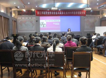 為了塑造員工良好的職業形象,提升商務魅力,杭州時代光華配合浙江**服裝有限公司形象部統一協調安排,特邀請了國內高級形象設計專家陳曦老師開展了《職業形象塑造與商務禮儀》的培訓課程。在短短1天的培訓過程中,陳老師主要從職場人士職業化形象的塑造、職場人士—商務禮儀交往、商務電話禮儀、接待拜訪禮儀與我們做了分享。培訓過程中,陳老師配合生動而豐富的案例,加上學員的互動及分組式情景模擬等多樣的教學形式,讓學員更加容易接受。培訓工作已順利完成,雙方的合作取得了圓滿的成功。課后學員紛紛表示了對此次培訓的認可,對講師的滿意率和培訓服務滿意率均給予高度評價。
