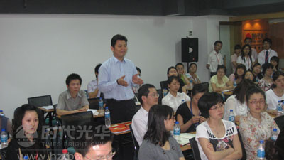 在最后的互動環節,杭州時代光華教育發展有限公司總裁方永飛老師助陣現場,和趙總一起就企業內部講師體系構建的問題與現場學員一起分享和交流。方總和趙總面對學員提出的問題都給出了自己的見解,得到了與會者的一致認可。
